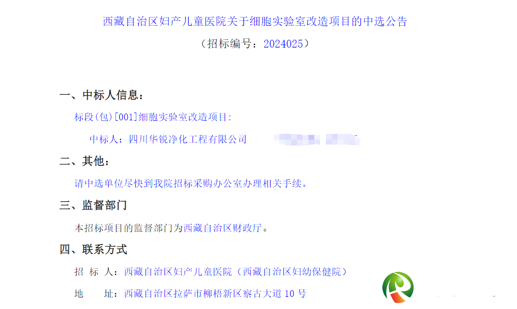 西藏拉薩細(xì)胞實驗室建設(shè)施工項目中標(biāo)