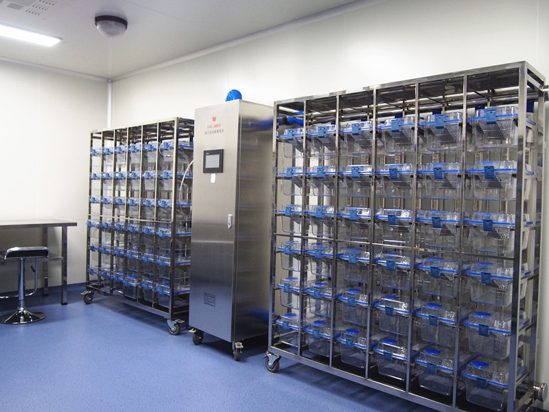 (3)隔離環(huán)境:該環(huán)境設(shè)施采用無(wú)菌隔離裝置以保存無(wú)菌或無(wú)外來(lái)污染動(dòng)物。隔離裝置內(nèi)得的空氣、飼料、水、墊料和設(shè)備均為無(wú)菌,動(dòng)物和物料的動(dòng)態(tài)傳遞須經(jīng)特殊的傳遞系統(tǒng),該系統(tǒng)技能保證與環(huán)境的絕對(duì)隔離,又能滿(mǎn)足轉(zhuǎn)運(yùn)動(dòng)物時(shí)保持內(nèi)環(huán)境一致。該環(huán)境設(shè)施適用于飼育無(wú)特定病原體(SPF)、悉生(GN)及無(wú)菌(GF)實(shí)驗(yàn)動(dòng)物。